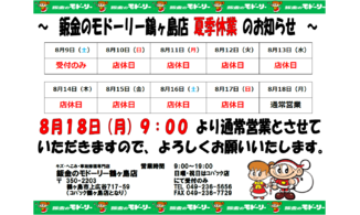夏季休業のお知らせ2023/07/18 お知らせ